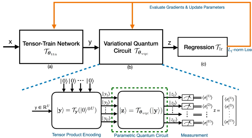 The noisy intermediate-scale quantum devices enable the implementation of the variational quantum circuit (VQC) for quantum neural networks (QNN). Although the VQC-based QNN has succeeded in many machine learning tasks, the representation and generalization powers of VQC still require further investigation, particularly when the dimensionality of classical inputs is concerned. In this work, we first put forth an end-to-end QNN, TTN-VQC, which consists of a quantum tensor network based on a tensor-train network (TTN) for dimensionality reduction and a VQC for functional regression. Then, we aim at the error performance analysis for the TTN-VQC in terms of representation and generalization powers. We also characterize the optimization properties of TTN-VQC by leveraging the Polyak-Lojasiewicz condition. Moreover, we conduct the experiments of functional regression on a handwritten digit classification dataset to justify our theoretical analysis.