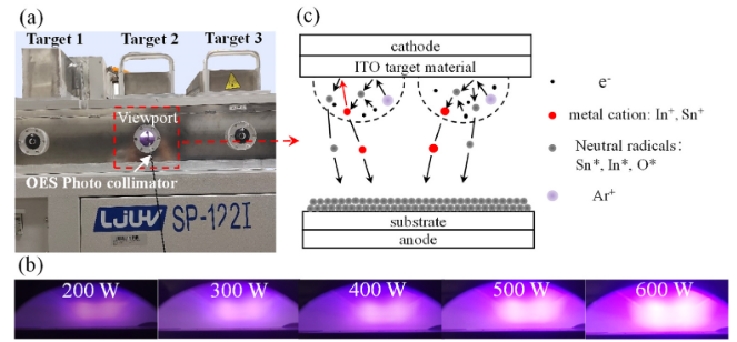 Tin doped indium oxide (ITO) film was prepared by high power impulse magnetron sputtering. The effects of power density on the compositional and structural evolution of the film were investigated. The higher power density was found to increase the Sn/In ratio due to the weakening of self-sputtering effect as the initial energy of sputtered species increases. The higher excitation/ionization rate of the oxygen species in the plasma at higher power density was found effective for passivating the oxygen vacancy defects and raising the Sn doping efficiency in ITO film. In addition, The higher power density also leads to the change of (2 2 2)-orientated grains to (4 0 0)-orientated grains, which is possibly due to the reduction of diffusion length and rising migration barrier of the deposited cations by increasing number of oxygen radicals. As the power density increases, the carrier concentration increases due to higher Sn content and Sn doping efficiency. The carrier mobility increases due to the crystal orientation change, passivation of oxygen vacancy defects and larger grain size. ITO film with resistivity of 4.1 × 10−3 Ω cm and transmittance of over 78% at 400–800 nm was obtained at a power density of 1.30 W/cm2.